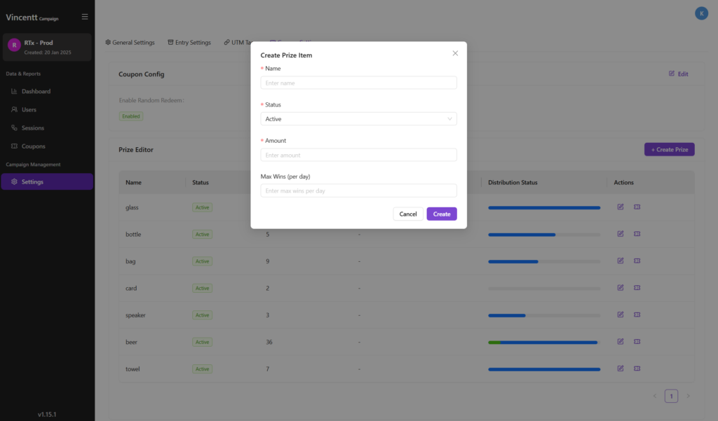 Prize Editor (Campaign Engine)