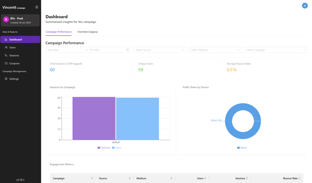 Every campaign comes with a real-time analytics dashboard.